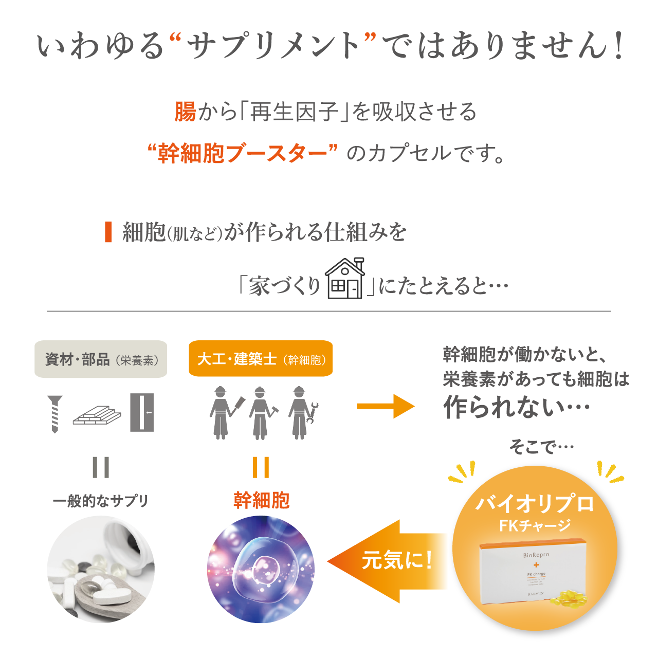 最新の再生医療技術から生まれた国際特許成分「不死化歯髄幹細胞培養上清液」を配合した体の内側から若返りをサポートするカプセルです。幹細胞が生み出す「再生因子」が体の内側から修復力と再生力を呼び覚まし、細胞の若返りを目指します。